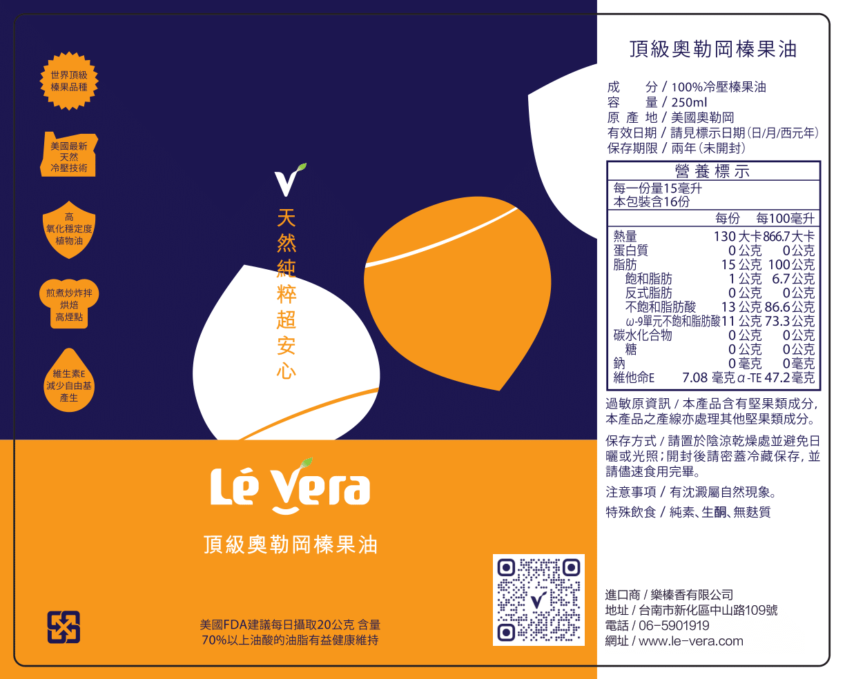 Lé Vera 的奧勒岡榛果油是由美國研發、製造、生產的全新純天然抗氧化食用油。